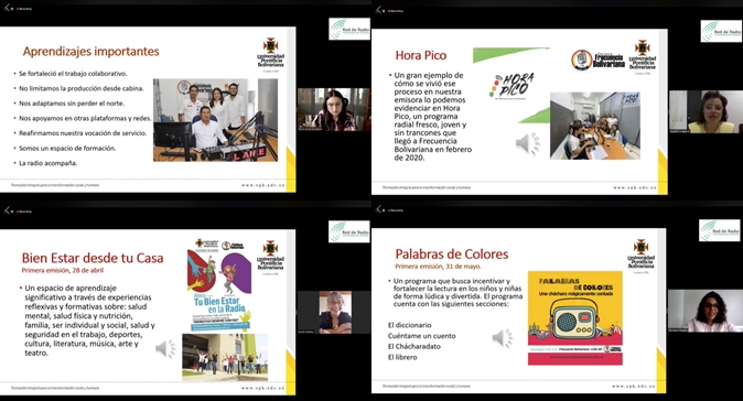 La coordinadora de Frecuencia Bolivariana, María Giset Escudero Negrete, participó como moderadora del conversatorio «Retos y oportunidades que nos dejó la Pandemia» en el XVII Encuentro de La Red de Radio Universitaria de Colombia, bajo el lema “Cinco regiones, un país».